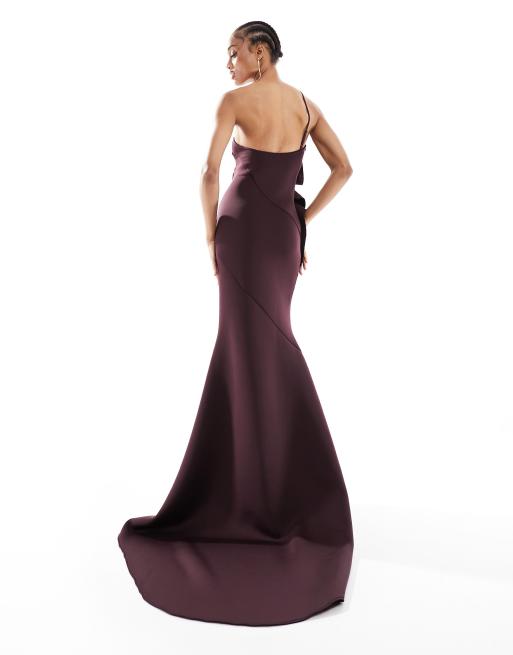 ASOS DESIGN Tall bandeau premium fan detail bodycon maxi dress with train in plum Very well made.
