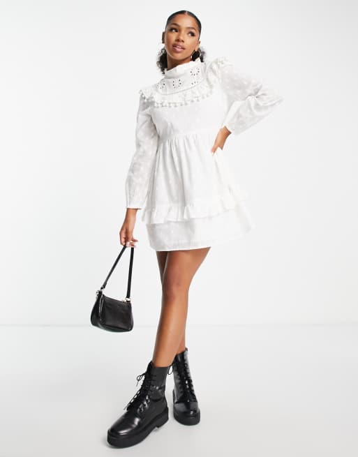 Miss Selfridge broderie pom pom mini dress in cream Very well made.