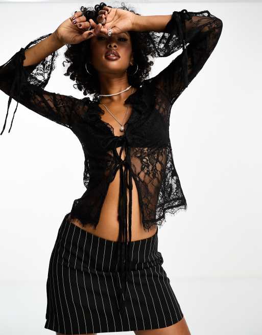 ASOS DESIGN sheer lace tie detail blouse in black ASOS Very well made.