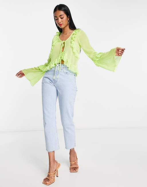 ASOS DESIGN tie front frill neck sheer blouse in print ASOS Very well made.