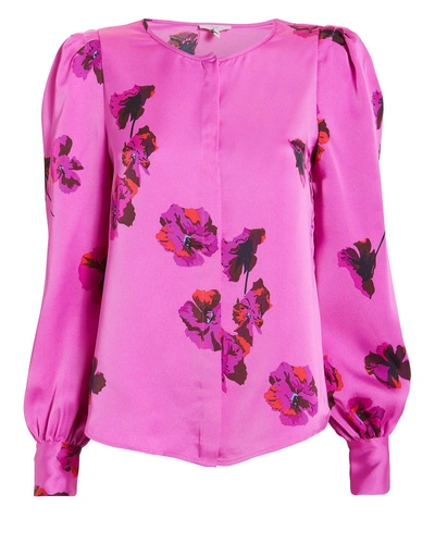 Antonela Button front Long sleeve Floral print Satin Top In Orchid Very well made.