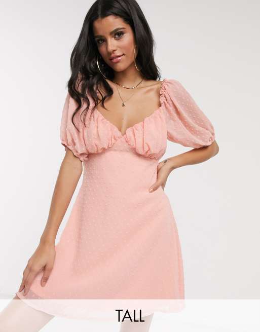 Missguided Tall dobby milkmaid skater dress in light pink Very well made.
