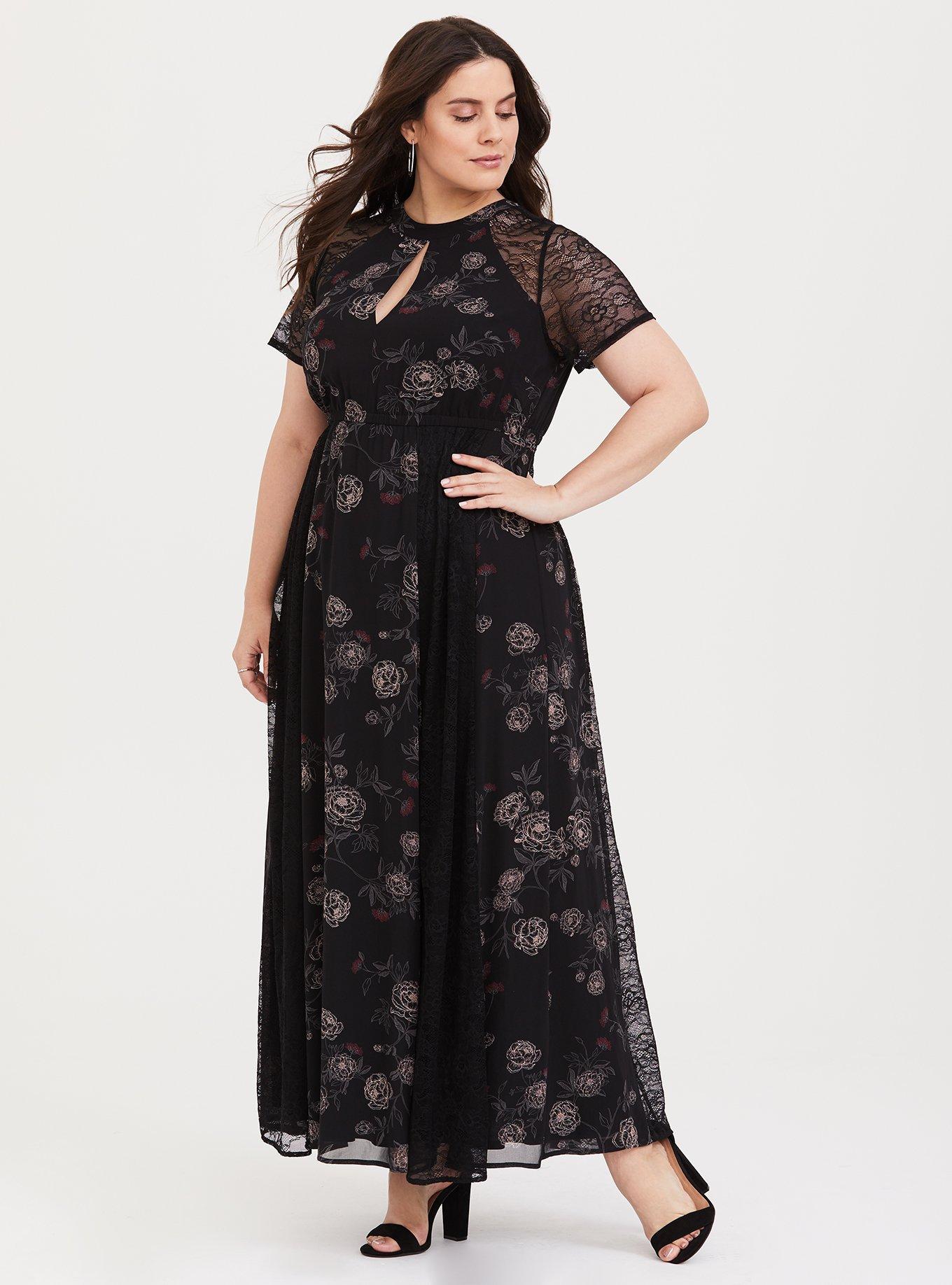 Plus Size Black Floral Chiffon Lace Maxi Dress Torrid Very well made.