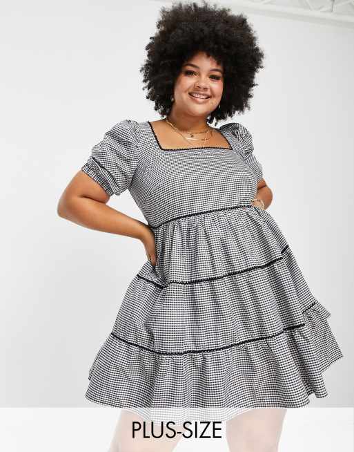 Simply Be smock dress with puff sleeves in black gingham check ASOS Very well made.