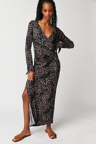 Shayla Wrap Midi Dress at Free People in Black Combo Size XS Very well made.