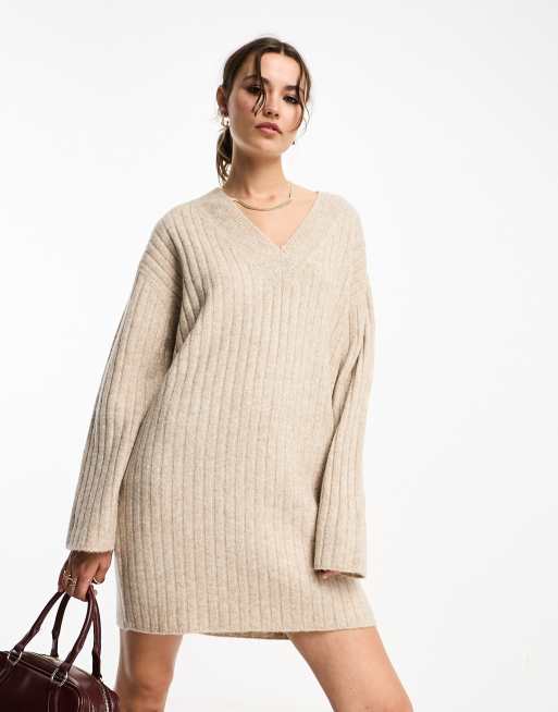 ASOS DESIGN knitted jumper mini dress with v neck in oatmeal Very well made.