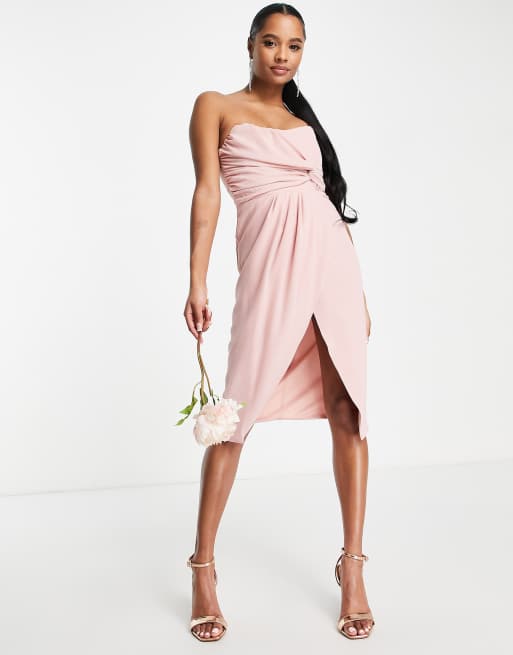TFNC Petite Bridesmaid Noee bandeau wrap dress in dusty pink Very well made.
