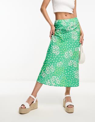 Wednesday s Girl midi satin slip skirt in green floral 15.50 Very well made.