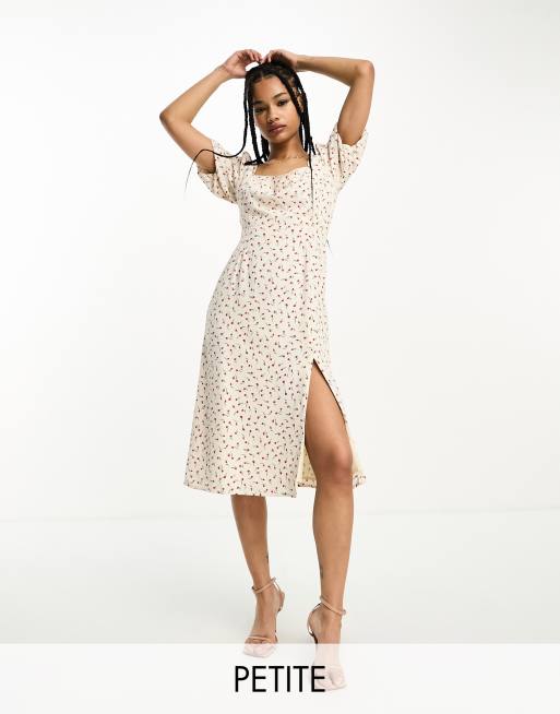 Glamorous Petite milkmaid midi tea dress with tie back in cream Very well made.