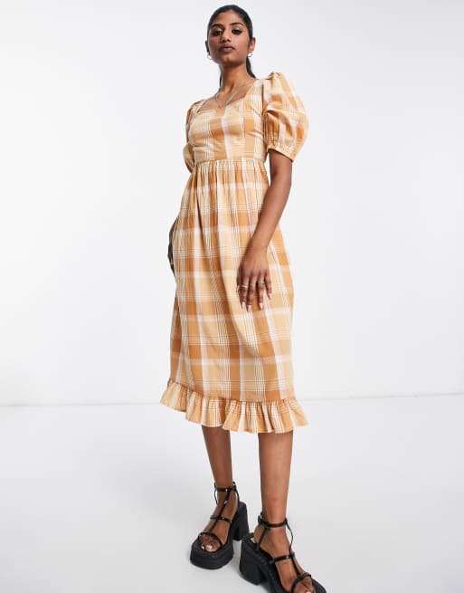 Violet Romance puff sleeve midi dress in check Very well made.