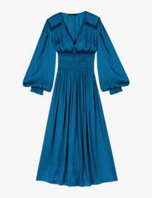 MAJE Riannette balloon sleeved V neck satin midi dress Very well made.