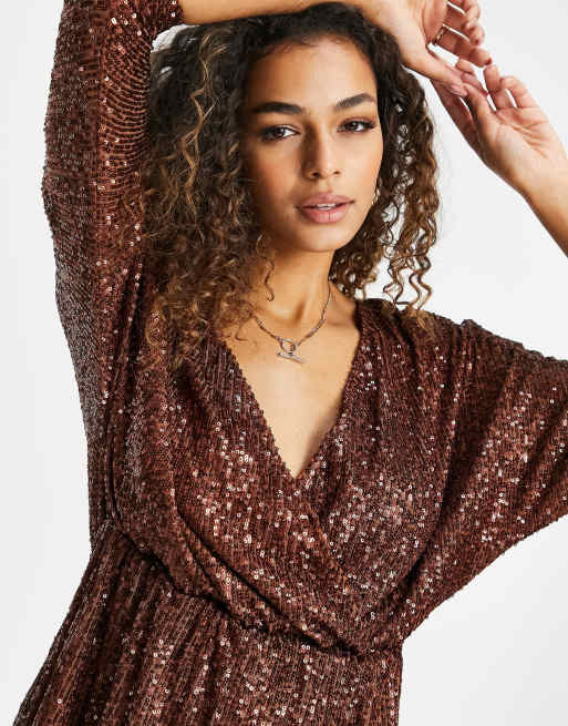 Club L London sequin wrap detail mini shift dress in bronze Very well made.