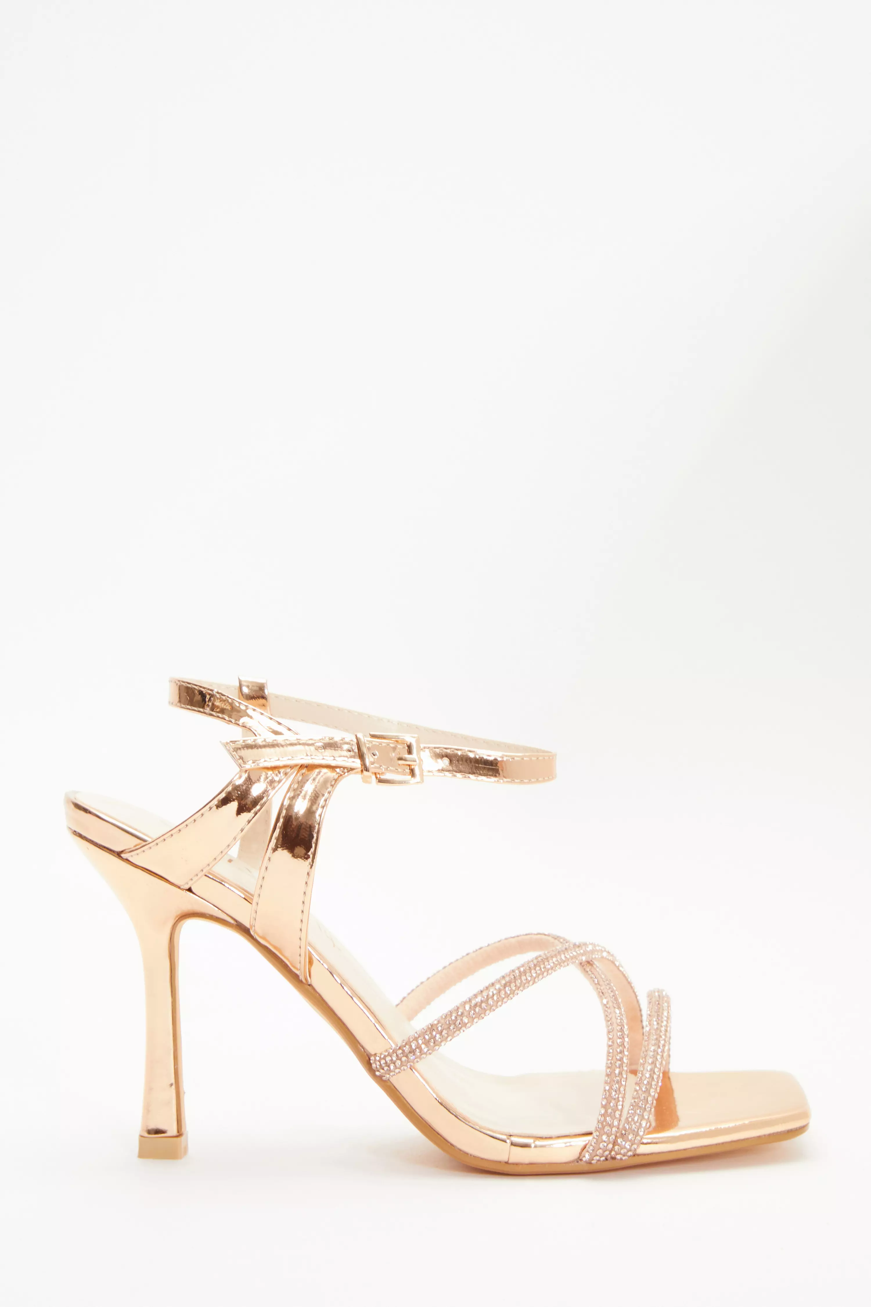 Wide Fit Rose Gold Diamante Cross Strap Heels Very well made.