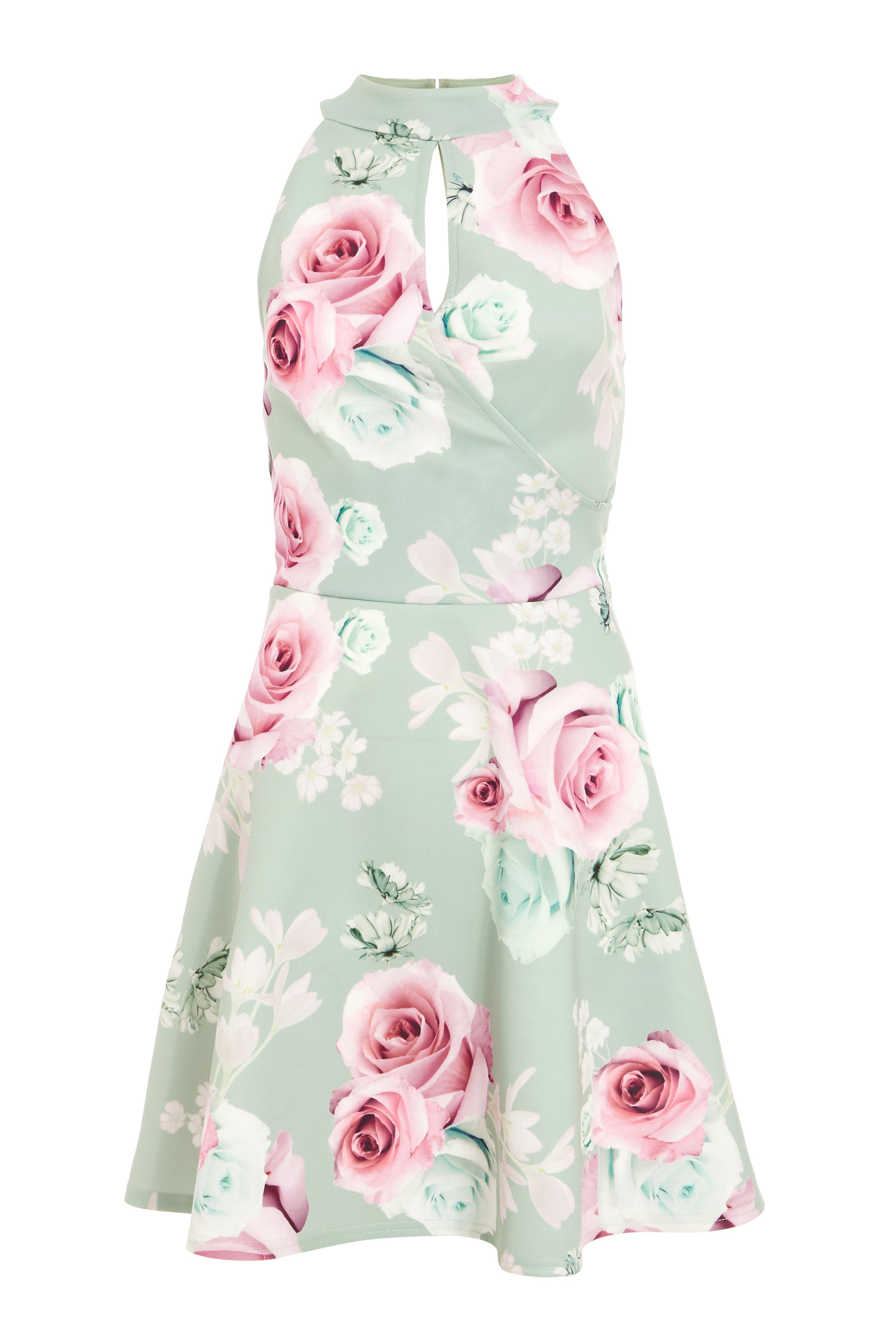 Sage Floral Print Skater Dress QUIZ Clothing Very well made.