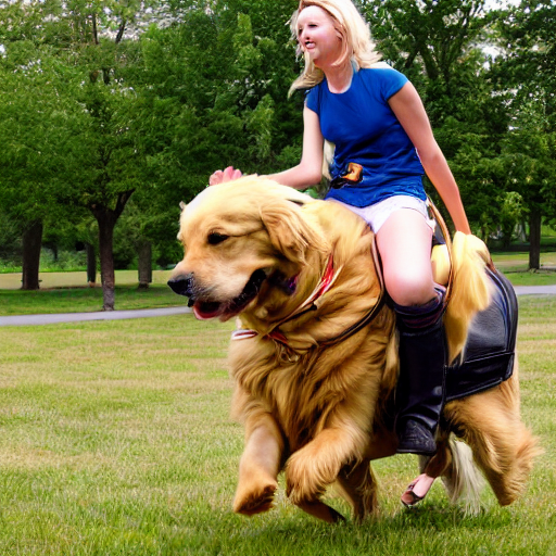 prompthunt human riding giant golden retriever in the park Very well made.