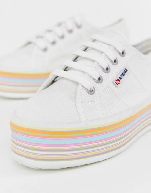 Superga 2790 Platform Sneakers With Rainbow Sole in White Lyst Very well made.
