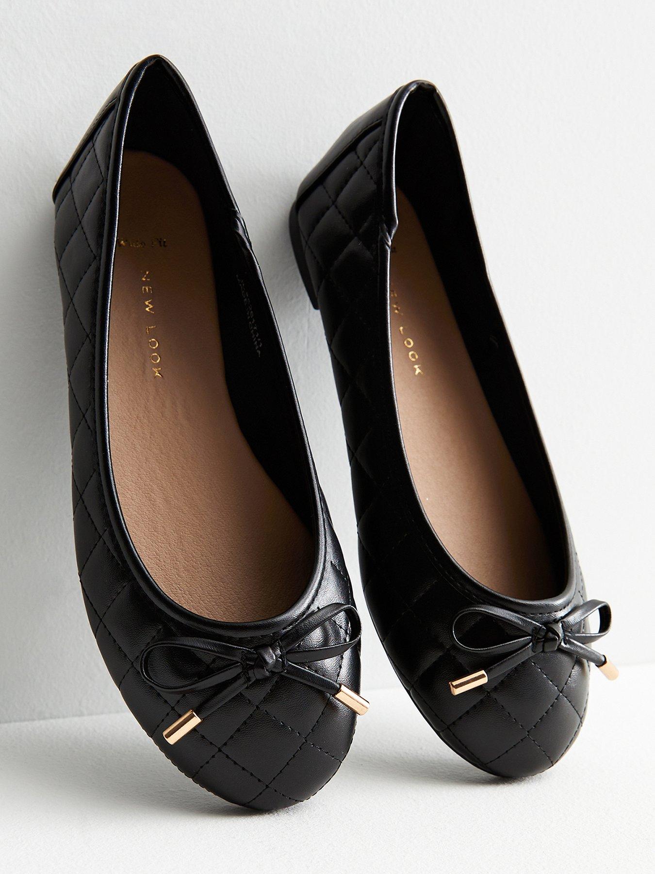 New Look Wide Fit Black Quilted Leather Look Bow Ballerina Pumps Very well made.