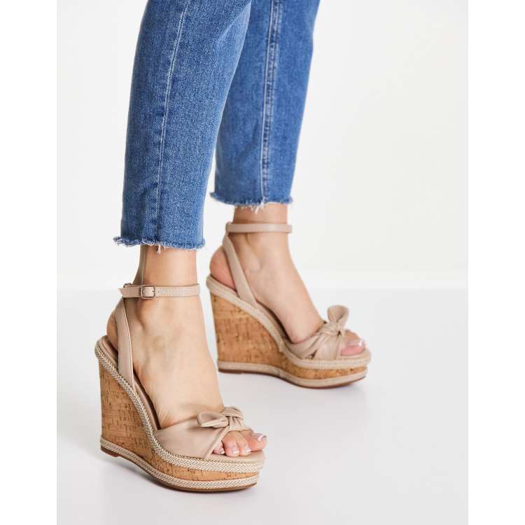 Aldo heeled cork wedge sandals with bow in bone Very well made.