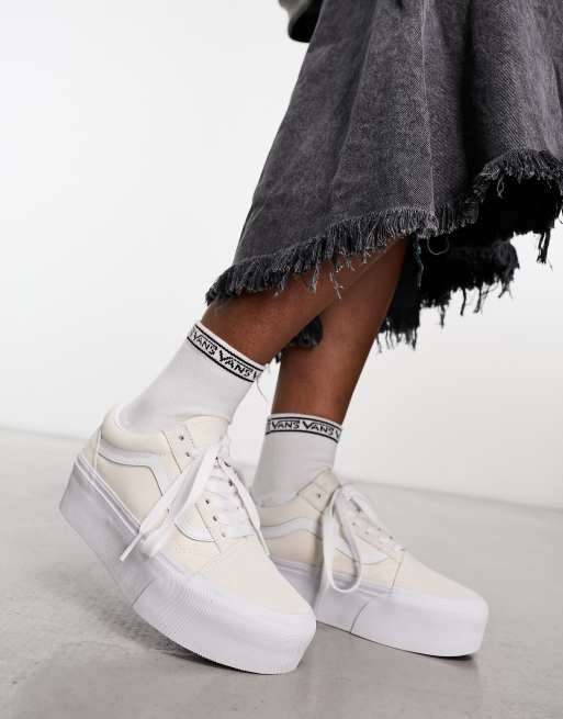 Vans Old Skool Stackform Naturvita och vita sneakers med plat Very well made.
