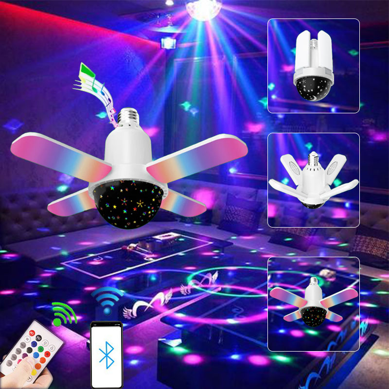 E27 4 Leaves Bluetooth Music Light Foldable LED Music Fan Projector Lamp with Remote Colorful Light Bulb Smart Speaker Fan Lights Very well made.