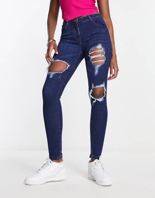Parisian high waisted distressed skinny jeans in indigo Very well made.