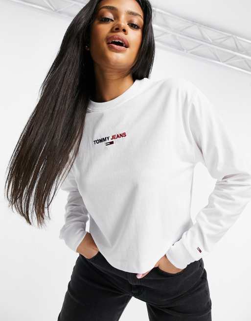 Tommy Jeans crop logo long sleeve tee in white Very well made.