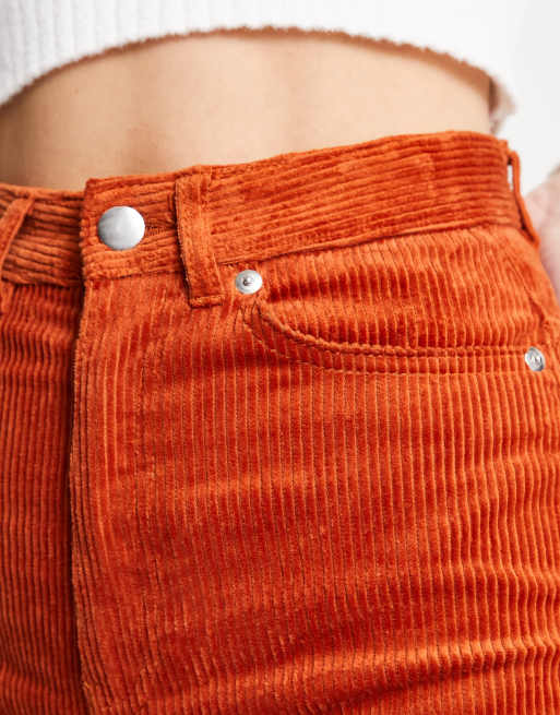 Monki slim leg corduroy trousers in rust Very well made.