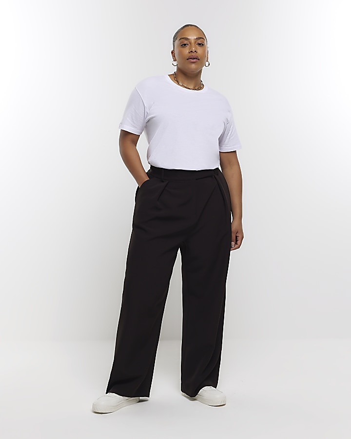 River Island Plus pleated wide leg trouser in black Very well made.