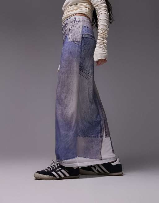 Topshop denim print mesh midi skirt in blue Very well made.