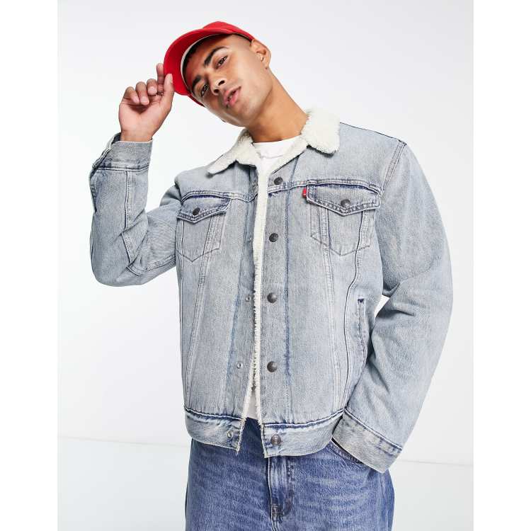 Levi s sherpa trucker jacket in mid wash blue ASOS Very well made.