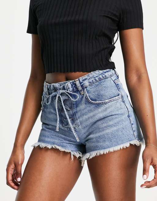 Stradivarius denim hotpant with lace up waist in deep blue wash ASOS Very well made.