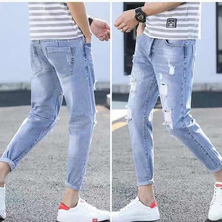 Ripped Jeans Men s Light Blue Slim Fit Summer Ankle Length Pants Very well made.
