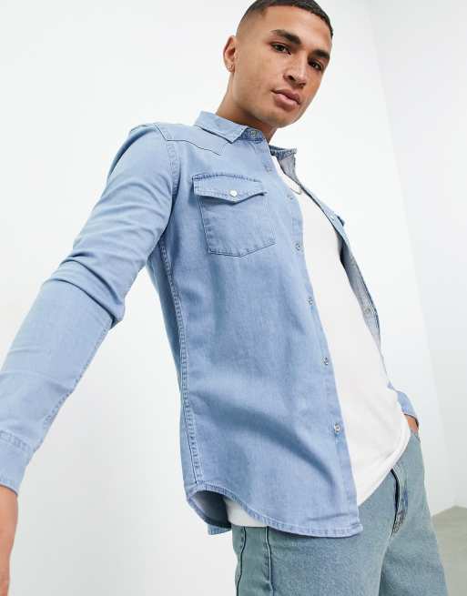 ASOS DESIGN skinny fit western denim shirt in light wash blue Very well made.