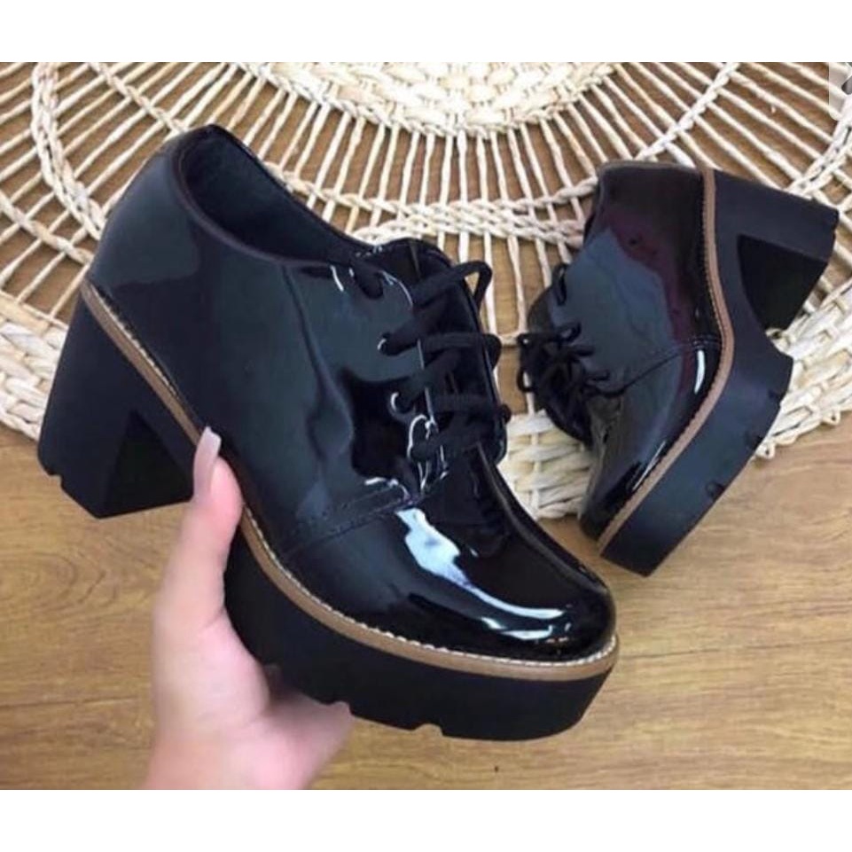 Sapato Oxford Feminino Sint tico Verniz Tratorado Preto KRN Very well made.