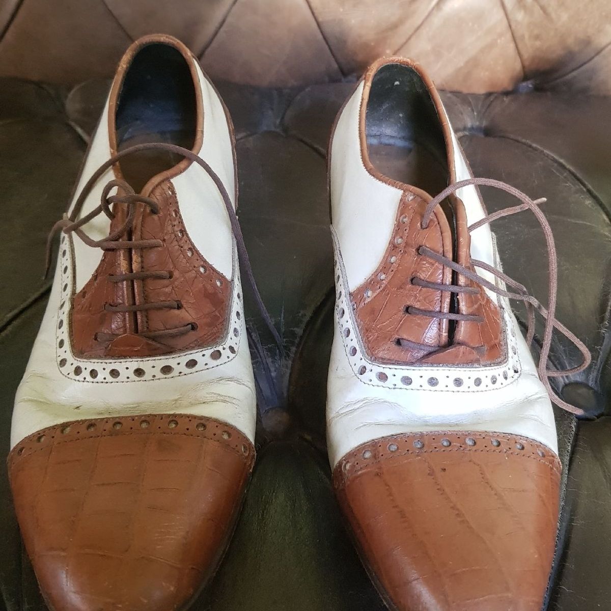 Derby Brogue Bicolor Wellington colors Mahogany with Green Very well made.