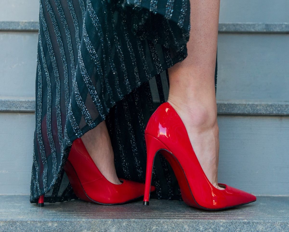 Scarpin vermelho brilhoso sapato bico fino com sola vermelha e Very well made.