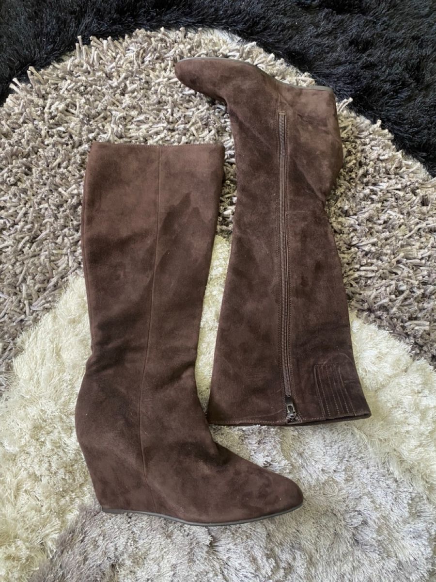 Bota Anabela Plataforma Camur a Marrom Via Spiga Couro Cano Very well made.
