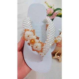 Sand lia Havaiana Customizada em Trama Floral com P rolas Brancas Very well made.