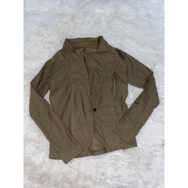 Casaco Militar Gola Padre Crepe de L Verde Militar Casaco em Very well made.