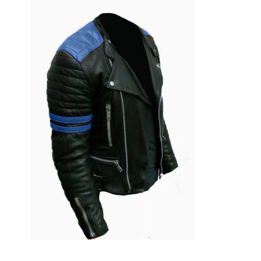 Jaqueta de couro masculina spider azul jaqueta motoqueiro Very well made.