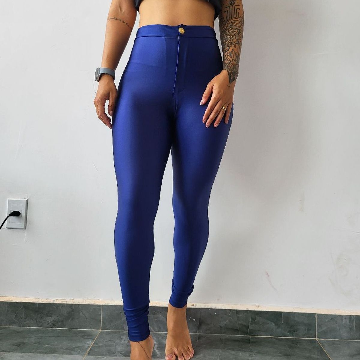 Legging Azul Cintilante Cintura Alta Cal a Feminina Basico Very well made.