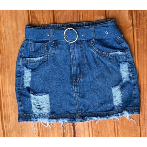 Saia Jeans Luxo Destroyed Feminina Cintura Alta ACOMPANHA CINTO Very well made.
