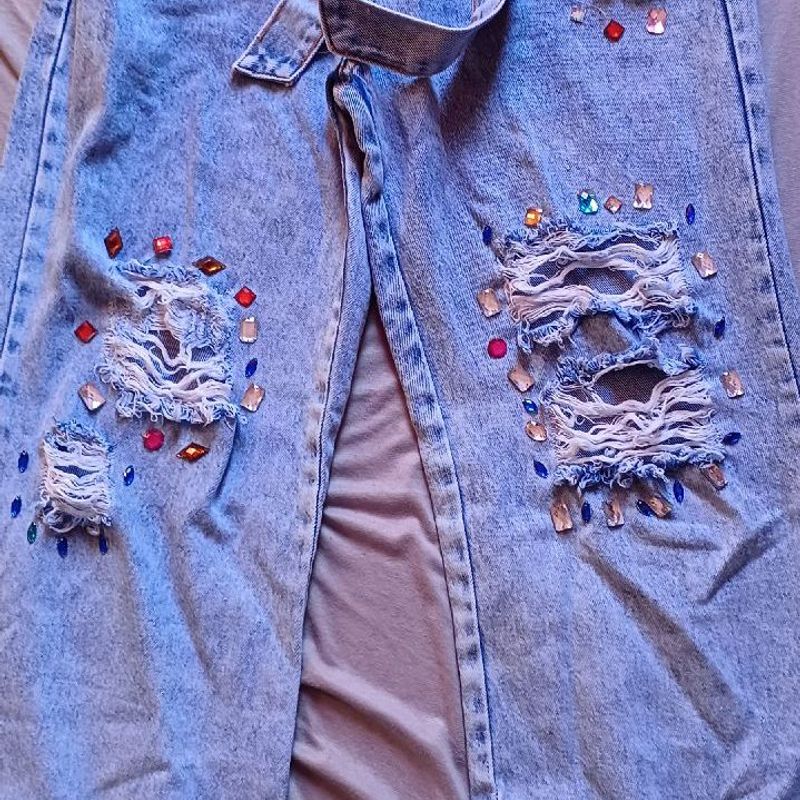 Cal a Wide Jeans com Pedraria Colorida Cal a Feminina Sawary Very well made.