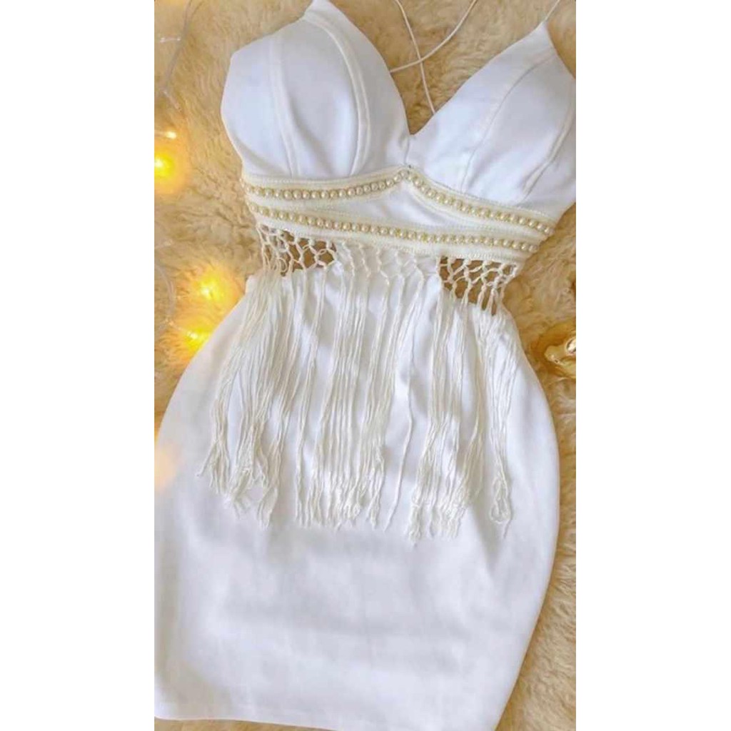 vestido branco bordado com perolas e franja blogueira Very well made.