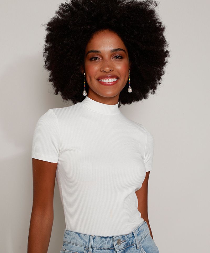 blusa feminina canelada manga curta gola alta off white C A Very well made.