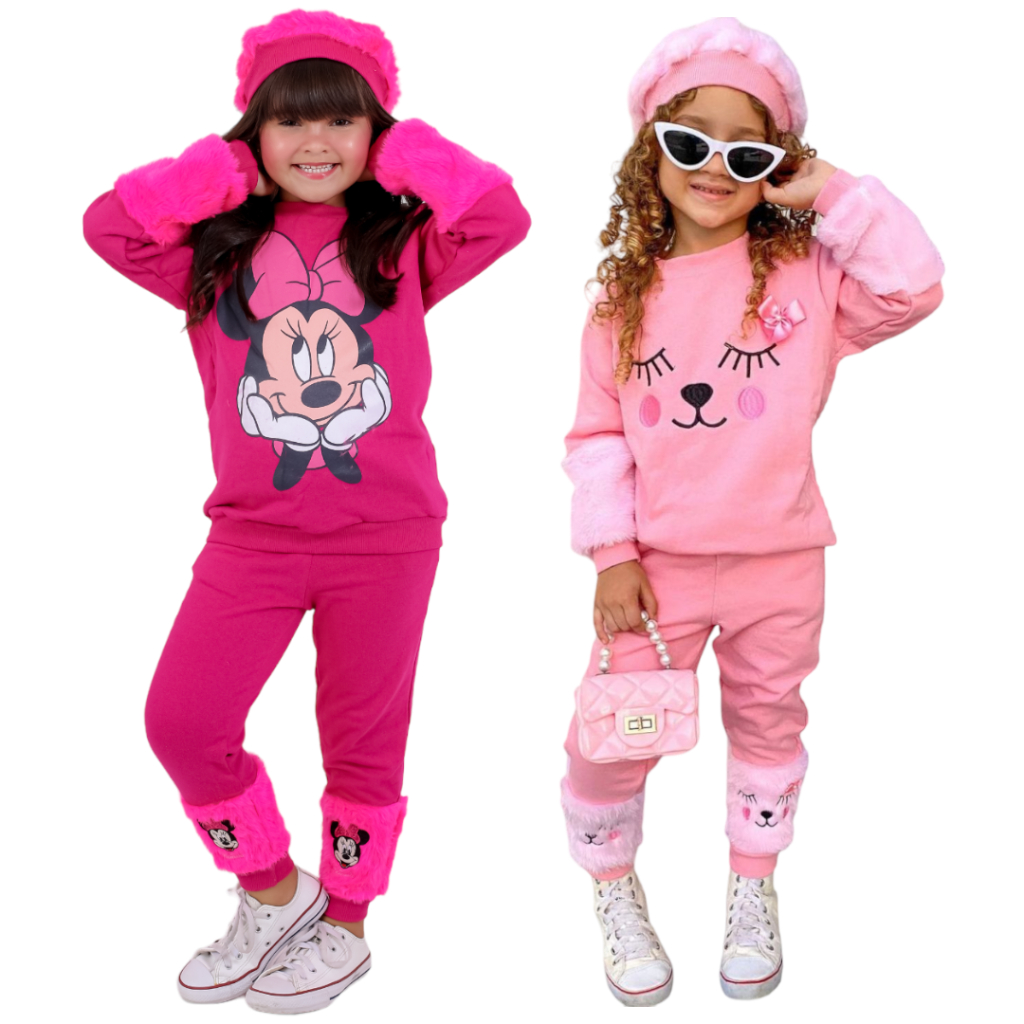 KIT 2 Conjuntos Moletom Minnie Carinha Luxo Moda Menina Atacado Very well made.