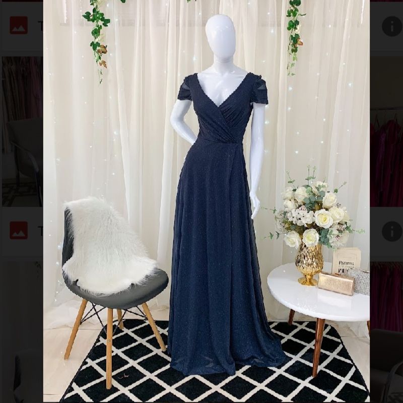 Vestido Azul Marinho Longo Manga em Chiffon Lantejoula Compre Very well made.