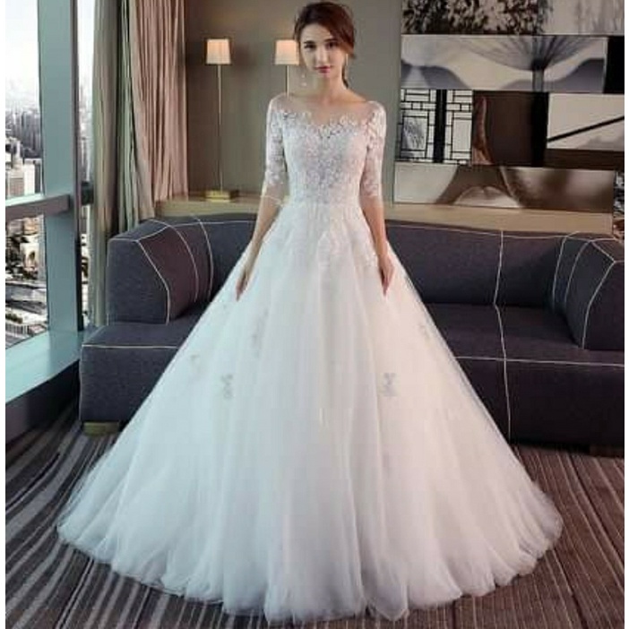 Serena Vestido Noiva Longo Semi Sereia Manga Copinho Tule Bordado Very well made.