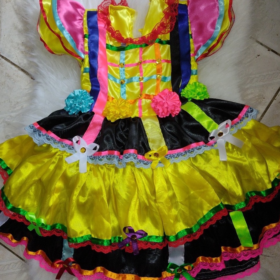 Vestido Festa Junina Infantil Caipira C Shorts Vermelho e Preto Very well made.
