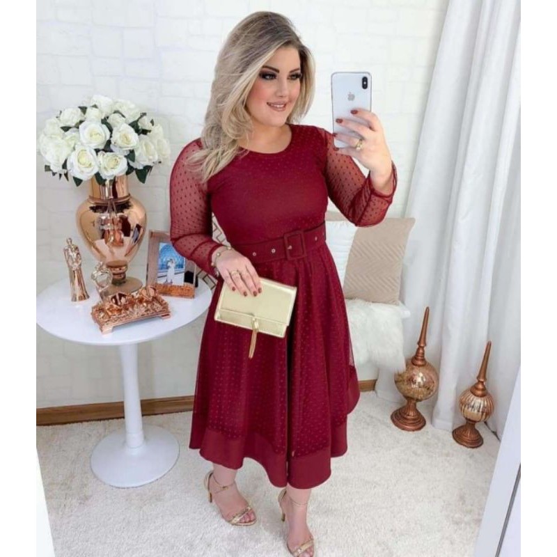 Vestido Plissado Modelagem God Manga Longa Maria Amore Moda Very well made.